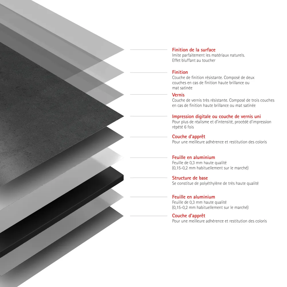 Matériau de qualité : composite d’aluminium résistant aux UV, aux chocs et rayures. Ne se décolore pas.