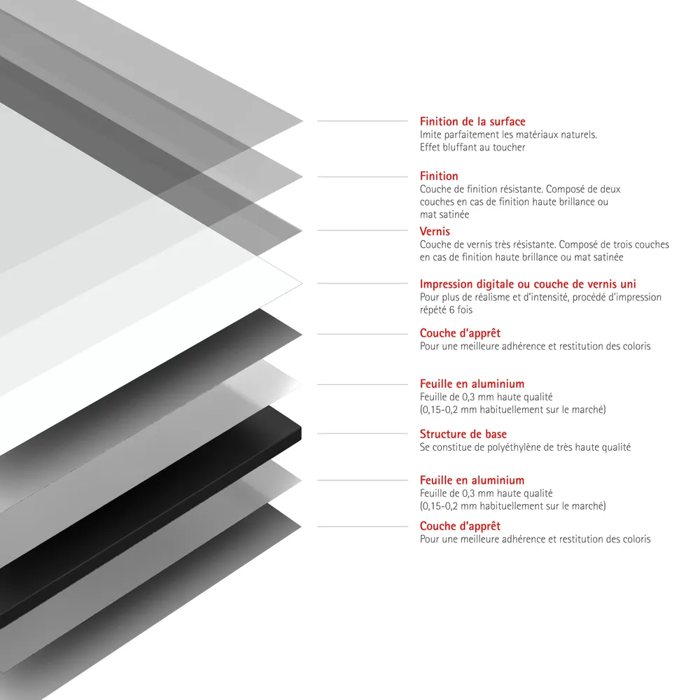 Matériau de qualité : composite d’aluminium résistant aux UV, aux chocs et rayures. Ne se décolore pas.