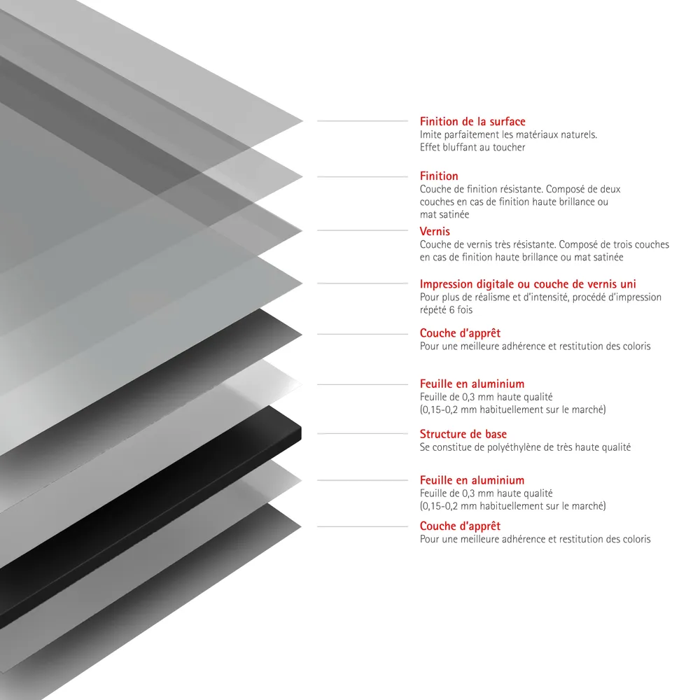 Brio : surface ultra brillante et lisse au toucher. Effet matière très réaliste. Rendu esthétique et tendance.