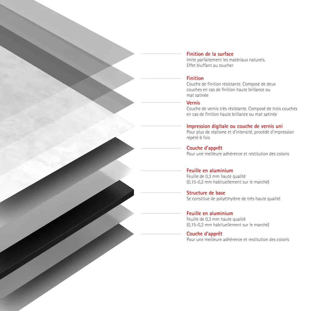 - Brio : surface ultra brillante et lisse au toucher. Effet matière très réaliste. Rendu esthétique et tendance.
