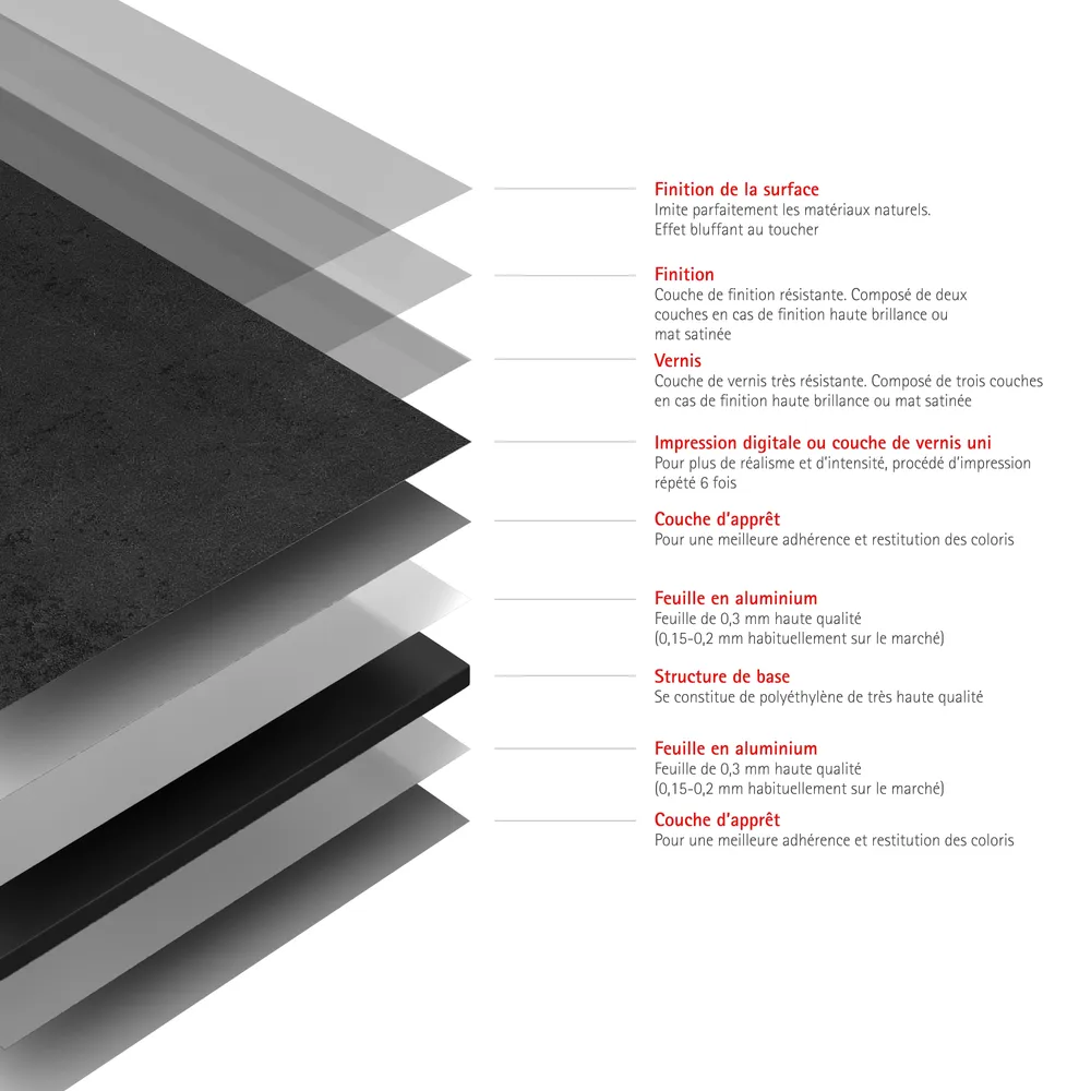 Matériau de qualité : composite d’aluminium résistant aux UV, aux chocs et rayures. Ne se décolore pas.