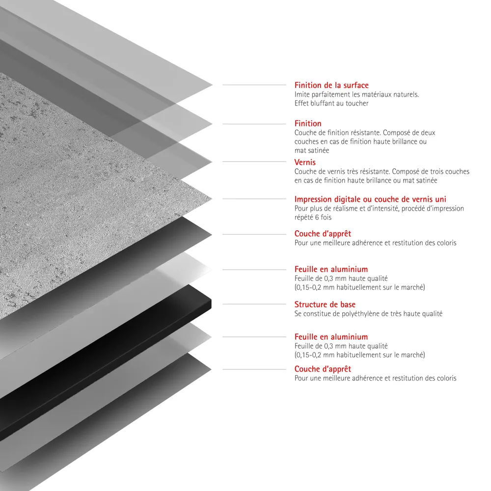Matériau de qualité : composite d’aluminium résistant aux UV, aux chocs et rayures. Ne se décolore pas.