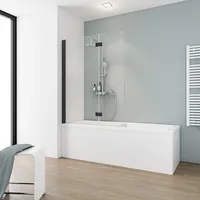 Pare-baignoire, 2 volets, 1040 mm, 1300 mm, Charnière, Noir mat, Transparent