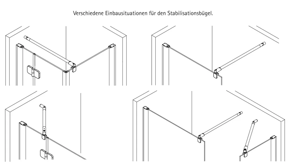 Vous souhaitez encore plus de stabilité et de sécurité dans votre douche ? Pas de problème ! Vous pouvez poser ultérieurement une barre de renfort. Disponible en noir, la barre de stabilisation s’adapte sur une paroi de 5 à 8 mm d’épaisseur. Elle est livrée en standard en 1220 mm. La barre pivote sur un axe horizontal et elle peut se fixer en perpendiculaire comme en diagonal. Bien pensé, les barres peuvent être raccourcies selon vos besoins.