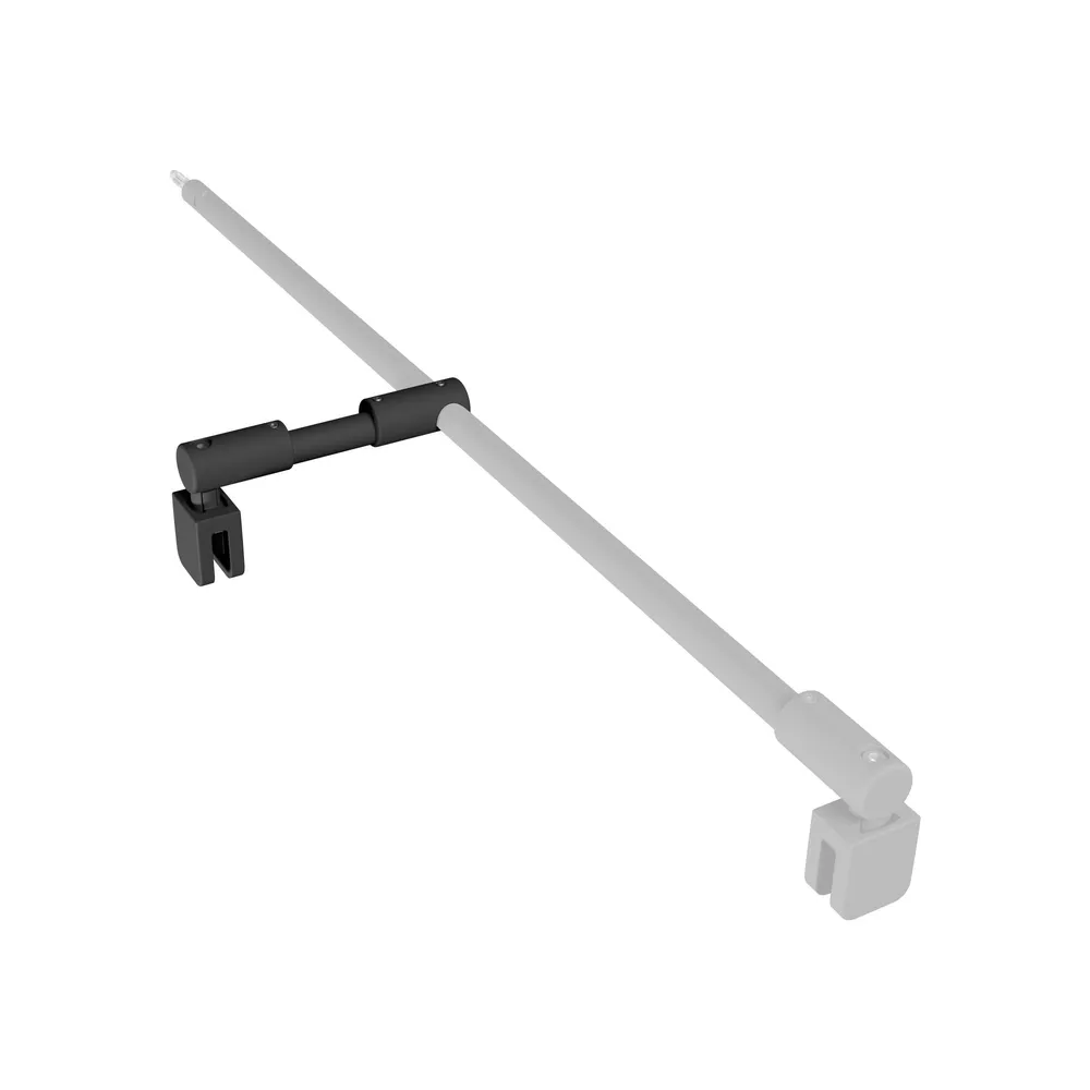 Cette pièce universelle est à fixer entre une barre de stabilisation déjà existante et une paroi de douche en verre.