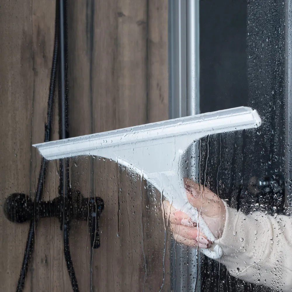 Comment nettoyer sans trace votre porte ou paroi de douche et vos fenêtres ? Optez tout simplement pour la raclette en plastique blanc de la marque Schulte.