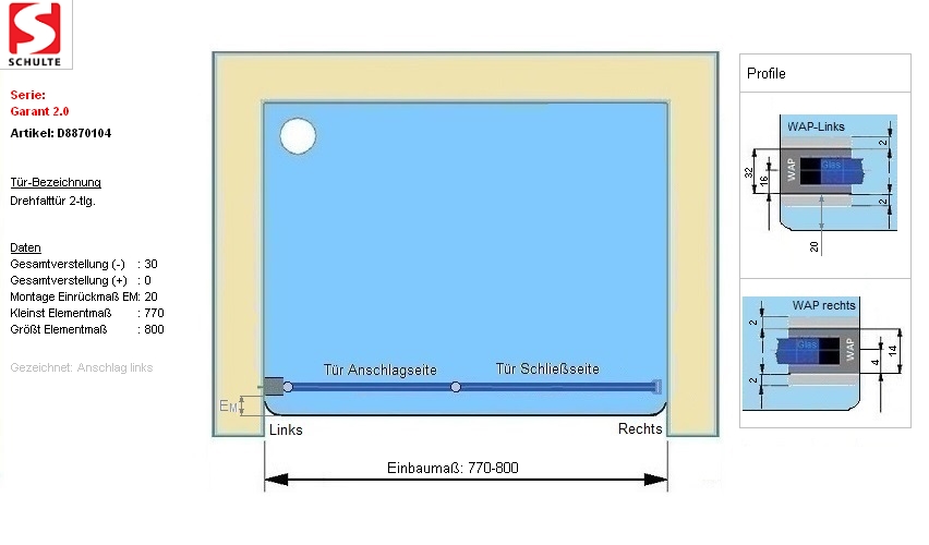 La forme de la charnière et la plage de réglage peuvent faire une différence décisive dans le dimensionnement. En cas de doute, veuillez contacter notre service clientèle.