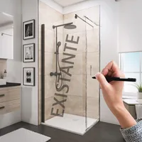 - Paroi fixe : décale l’ouverture de la porte. Idéal si un meuble, un lavabo ou des toilettes gênent dans le passage