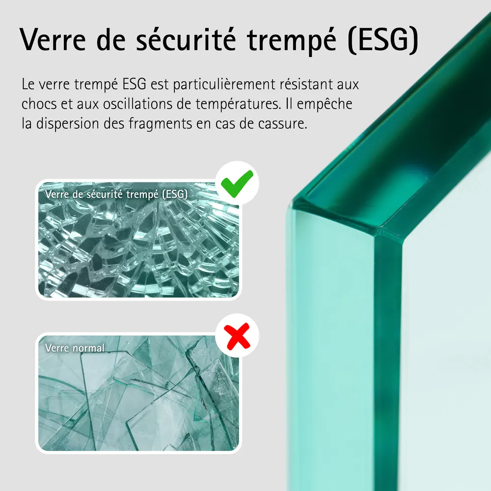 - Verre de sécurité 6 mm : maniable lors de la pose