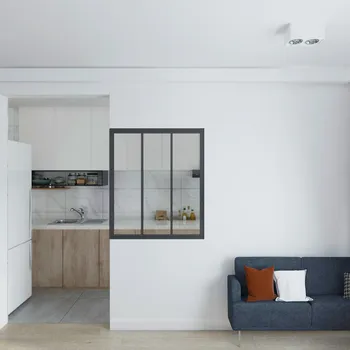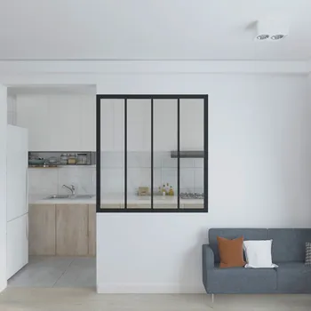 Schulte vous propose des verrières fixes. C’est le modèle le plus simple et le plus répandu qui ne dispose d’aucune partie mobile. Il est utilisé pour séparer deux espaces. Il convient parfaitement pour les cuisines ouvertes sur un salon ou une salle à manger, permettant ainsi de délimiter les zones sans perdre en convivialité.